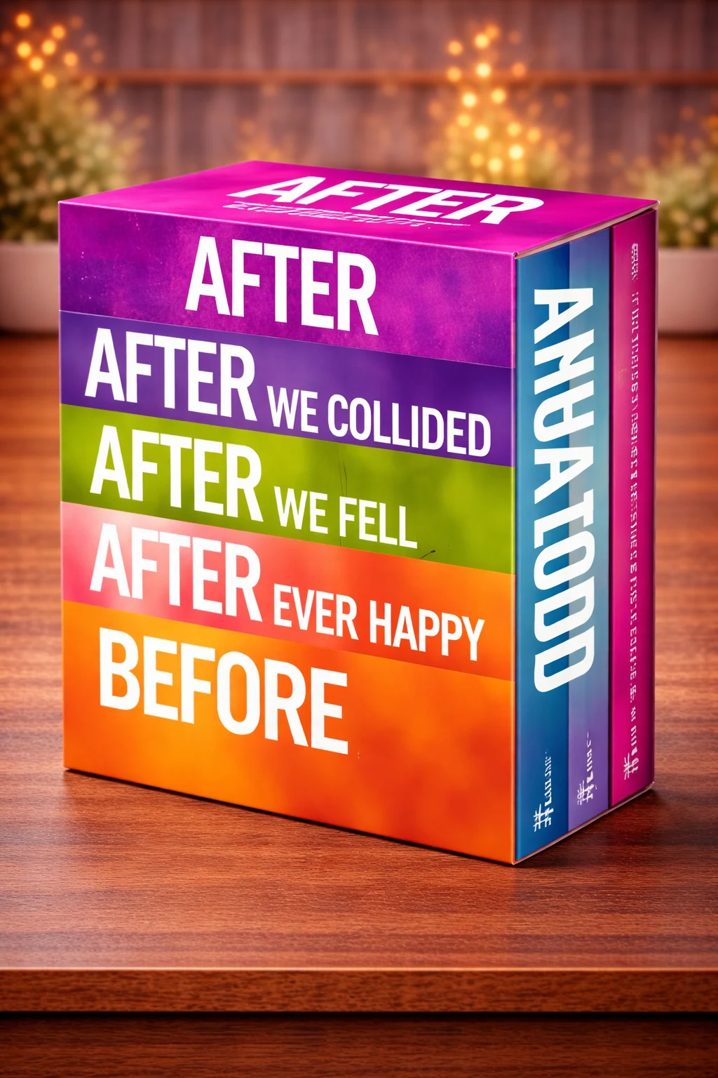 From New York Times bestselling author Anna Todd comes the complete After series, the inspiration behind the films After and After We Collided. The series follows Tessa and Hardin through a passionate, tumultuous romance filled with secrets, jealousy, and heartbreak. As their bond is tested by dark pasts, personal revelations, and tragedy, both must confront whether their love can survive. The collection also includes Before, offering additional perspectives on their relationship and revealing Hardin’s inner world.