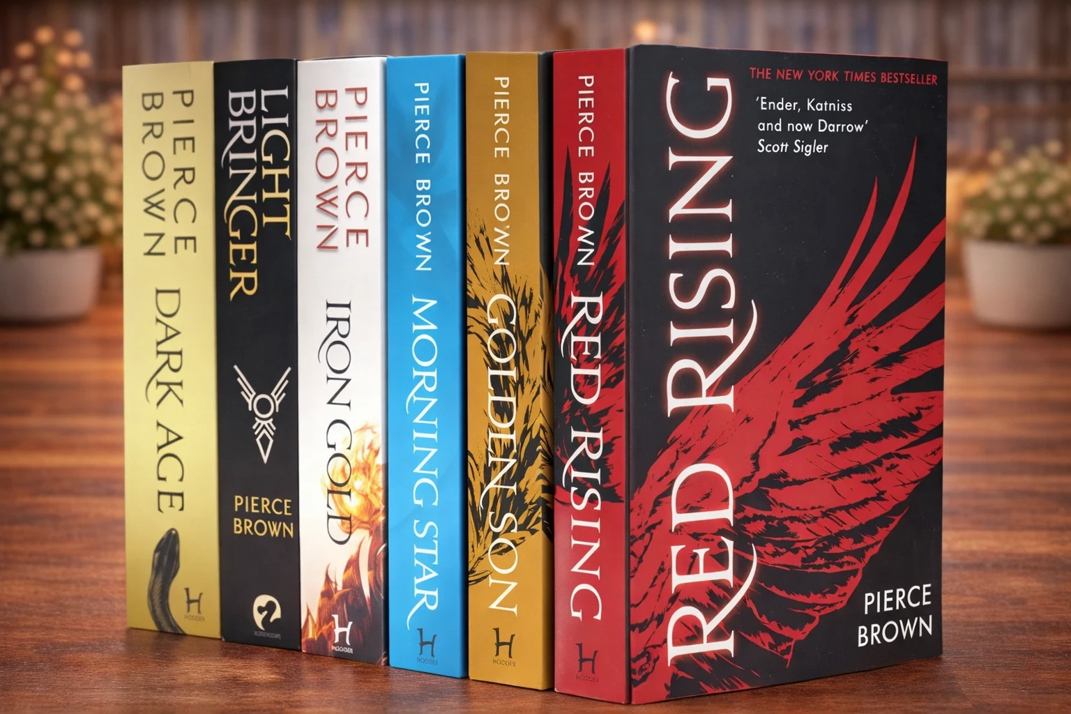 Titles: Red Rising, Golden Son, Morning Star, Iron Gold, Dark Age & Light Bringer by Pierce Brown